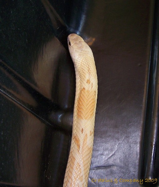 0.1 CB07 Sunset Monocle Cobra (Naja kaouthia) Produced by Diamond. Very laid back girl, easy to handle. She gets prettier with every shed. $725 plus shipping via Delta Air and $25 box charge. All venomous laws apply, know yours, we will check. No sales to anyone under the age of 21, proof of age may be required. Please visit our website for terms of sale and shipping information. http://www.crotalusco.com/terms.html
