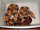 Typical, but the buyer backed out at the last minute on this guy.. He has bred for at LEAST the last four years that I know of.. He is very light in color, fairly bold saddles, LOTS of pink and a very abberant deep orange tail.. I haven't taken a lot of pics of him and don't have any of him in his light stage... but here is a pic in his dark stage and you have my word, he looks much better in person and in his light stage, but you can get an idea... Very nice snake!!! Price on him is 225.00 SHIPPED O B O!!!