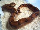 He's an '02 animal. I got him from Jesse Van Atta about 6 months ago. He is from a CA looking male pet store boa bred to a female hypo from Rich Ihle's first litter. Then one of the hypo males from that litter, bred back to the mother. Which makes him a possible super and I feel that the chances are pretty good. He's so nice looking. Great orange color all over him, especially near the tail and belly. He has blue all over his sides and he goes through intense color changes like a Hogg. He'd be perfect bred to a Hogg, another nice hypo, or even an Argentine or a nice normal. He eats f/t medium or large rats and is over 5 feet long. Produces sperm and is ready to breed right now.
