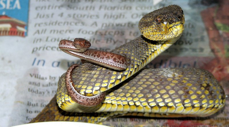 2.2 Mangrove Pit-Viper (Trimeresurus purpureomaculatus) born 5/9/2007. These will be ready to go soon after a few meals. I'm asking $75ea or $150/pair. If your interested, you can reach me via email at FLVenom04@yahoo.com.