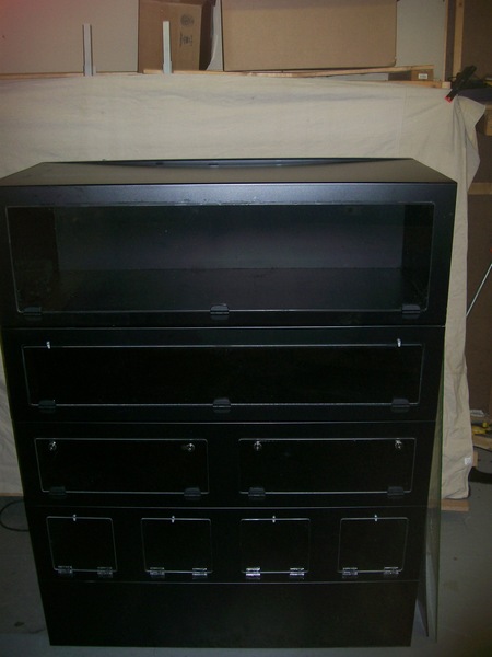 1-SF48 Black with grey track and glass doors this unit is built and ready , ( waiting for boxes before this unit can shipout ) $350.00 shipped DHLground
