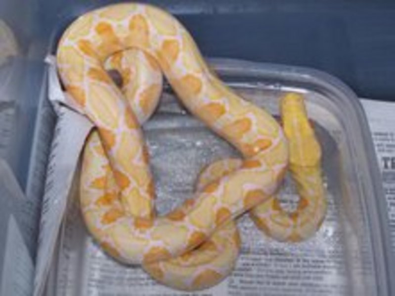 1.0 4.5' amel retic for sale. super tame feeding on f/t small rats. flawless condition, perfect snake. $450.00 shipped! please call me or email me with any questions. i will take trades for other retics!