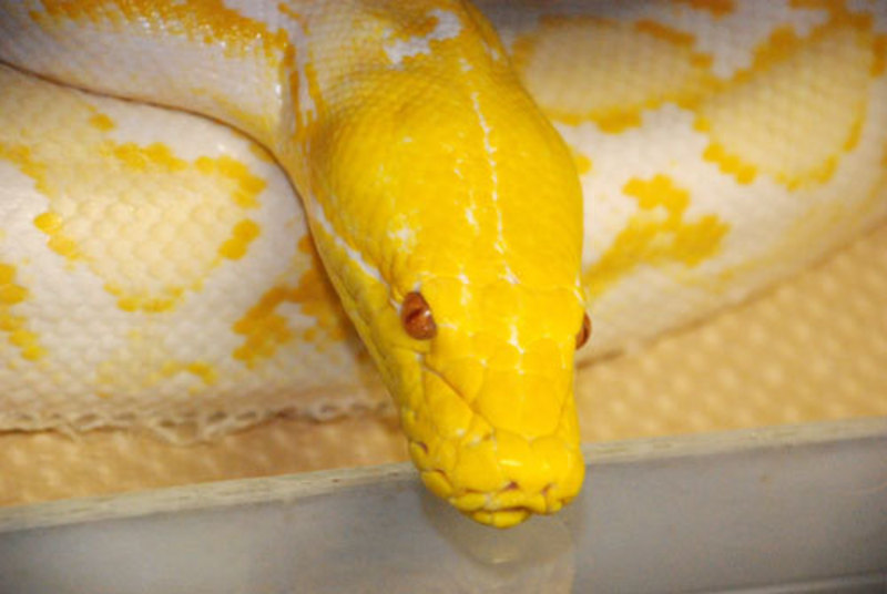 Small adult albino female retic, orange and white phase. Slow grown but has a killer appetite for pigs, rabbits, rats, anything. Its in the 9-10ft range and will make great addition to breeding project or pet. Normal Retic feeding response.