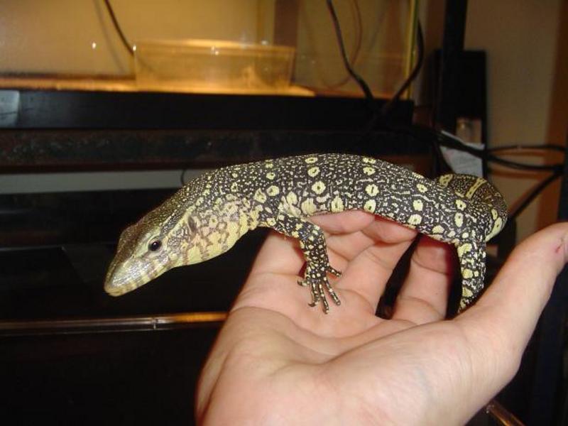 Ornate Nile Monitor. SVL approx. 7-9 inches. Perfect tail and all toes. Unsexed. Great feeder. Aggressive. Asking $100.00 Cannot ship. Must pick up in SC